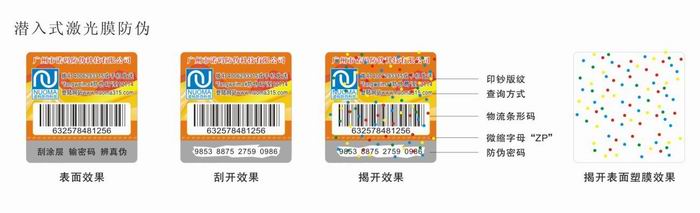 將激光信息潛入到標(biāo)體中,揭開后激光信息滯留于被貼物面層上。
